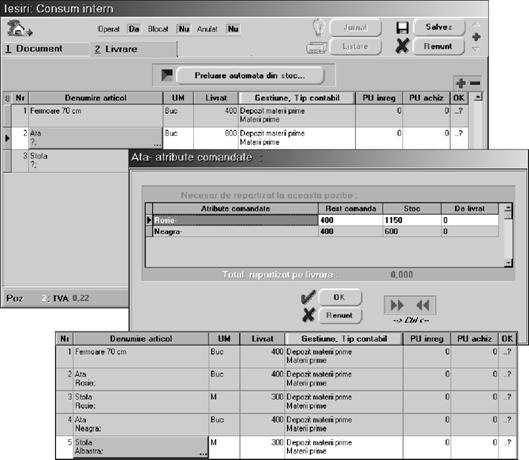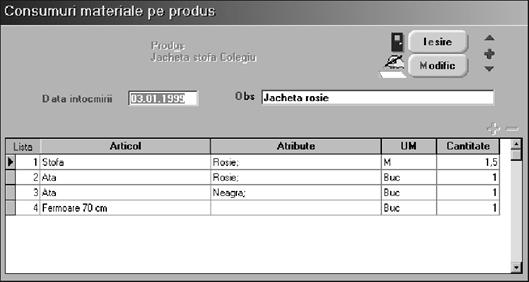 scoaterea `n consum a materiilor prime, necesare atelierului de confec]ii, pentru realizarea produselor din comanda intern\ lansat\