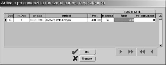 Pentru alegerea furnizorului ac]iona]i butonul "FURNIZOR". Dup\ selec]ia firmei "TEXTILA SA" din lista de alegere a partenerilor, tasta]i "TAB".