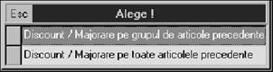 Observa]i `n primul rând de butoane de sub grila facturii butonul "+DISCOUNT/MAJORARE" care a fost tot timpul pe ecran [i pe care nu-l ve]i folosi pentru moment deoarece furnizorul nu a acordat nici un discount [i nu a perceput nici o m\rire de pre]uri. ~n timpul select\rii articolelor, al\turi de el a fost afi[at butonul "CERTIF.CALITATE". Selecta]i-l!