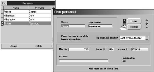 Dup\ ce selecta]i numele angajatului Simion Alexandru, cu ajutorul butonului de alegere, va fi afi[at `n col]ul din dreapta-jos, m\rimea avansurilor, `n moneda lei, pl\tite de firm\ angajatului.