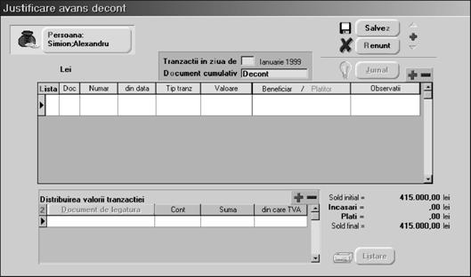 Pentru c\ a]i `nc\rcat soldurile ini]iale ale personalului, vom putea `nc\rca cu u[urin]\ urm\torul exemplu de urm\rire a justific\rilor de avansuri.