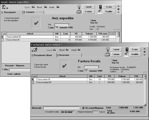 Al doilea pas: avizul de expedi]ie [i factura care angajeaz\ partenerul "STAR SRL" ca [i client.