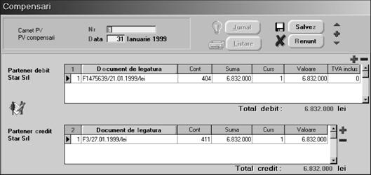 Introduce]i data compens\rii (conform procesului verbal de compensare) [i selecta]i apoi partenerul debitor, `n cazul nostru "STAR SRL".