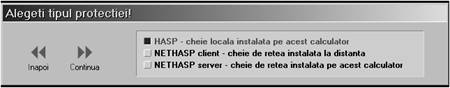 In cazul īn care cheia de protectie primita īn pachetul de instalare este de culoare alba (este o cheie care asigura protectia pentru un singur calculator) sau daca detineti doar versiunea demonstrativa (fara cheie de protectie), alegeti optiunea "HASP".