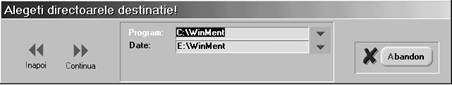 Directorul implicit propus de secventa de instalare este C:\WinMent. Daca doriti instalarea īntr-un alt director al calculatorului curent, aveti doua posibilitati: