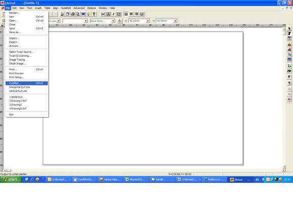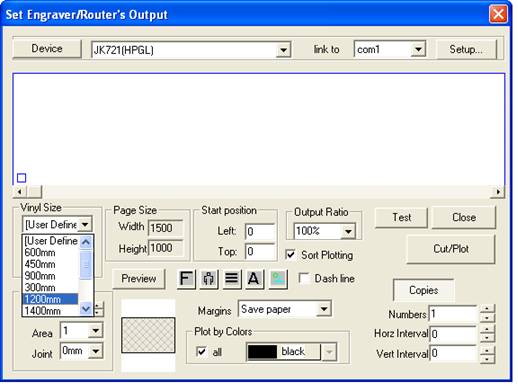 Aici puteti creea grafica sau puteti importa fisiere facute in CorelDRAW dupa ce acestea au fost exportate cu extensia ".eps"