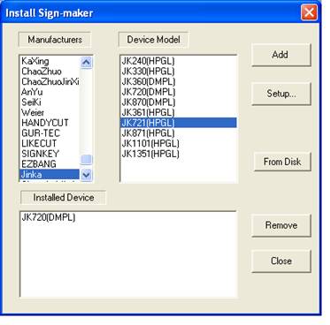 In fereastra care s-a deschis selectati din coloana din stanga Jinka si in dreapta alegeti JK721(HPGL)(sau Jk 1101 ,Jk1351 in functie de model) si apasati butonul ADD