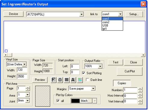 selectati in fereastra Set Engraver and Router, la optiunea link to - com1