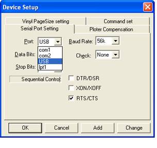 -apasati butonul SETUP si selectati la port USB , la Seqvential Control sa fie bifat RTS/CTS,iar la Baud Rate sa fie 56k