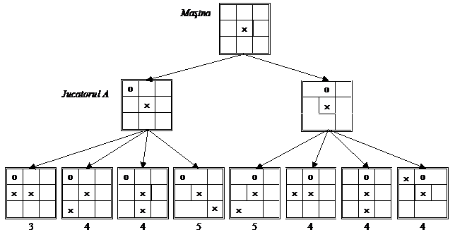 Daca se specifica o stare initiala si una finala, se poate reprezenta graful de cautare propriu problemei propuse. Starile se pot reprezenta ca tablouri 3 3. Utilizand calculul predicatelor, o stare, sau baza de date curenta se poate reprezenta printr-un predicat “stare” continand 9 argumente. De exemplu, starea initiala poate fi reprezentata utilizand predicatul: