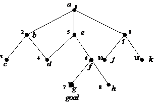 Exemplu: Sa se descrie evolutia listelor Open si Close in problema de cautare reprezentata mai jos prin algoritmul Depth First.