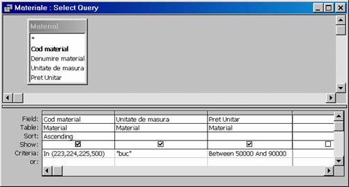 q se specifica criteriile de selectie si se utilizeaza comanda <View, Datasheet View> pentru a vizualiza rezultatul.