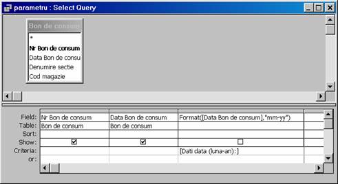 De exemplu vom realiza o cerere de interogare care sa afiseze bonurile de consum dintr-o anumita luna.