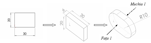 Muchiile 3 si 4 se rotunjesc cu o raza de 1 mm.