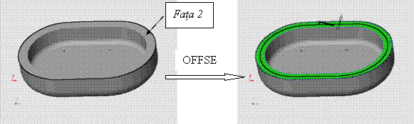 Se selecteaza din nou fata 2 si se da comanda offset. Deoarece initial calculatorul a plasat curba multiplicata în exteriorul modelului se va activa casuta Reverse. Distanta pentru offset este de 1 mm. (Fig. 13.3., Fig. 13.4.)
