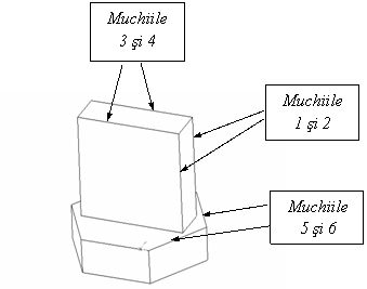 Muchiile 1, 2 si celelalte muchii corespondente se rotunjesc cu o raza de 1 mm.