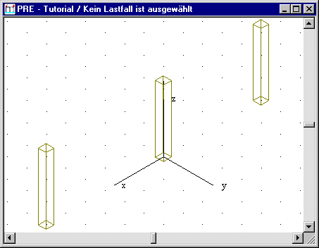 In primul pas veti introduce trei stâlpi pe aceeasi directie. Folosind optiunea de meniu Structura / Inserare componente tip grinda puteti introduce elemente liniare. În textul urmator textul grinzi poate sa însemne orice componenta tip grinda (stâlpi).