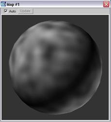 Revenind in sectiunea Maps a texturii, se apasa pe butonul din dreptul hartii Bump, se alege tot Bitmap, si se cauta imaginea "bump_peau.jpg". Aceasta va adauga niste modificari la randare, in 3D, sub forma unor mici crevase de-a lungul texturii initiale. Rezultatul la randare este urmatorul: