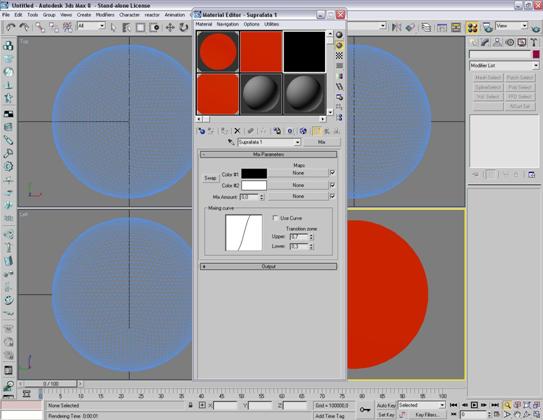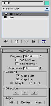 Se deformeaza neuniform sfera, pe directia axei X, folosind butonul [select and Non-Uniform Scale], aflat sub bara de meniuri, din partea superioara a ecranului. In urma deformarii se obtine o sfera turtita, de diametru orizontal mai mare ca cel vertical, dar care dupa modelare poate fi rotita dupa cum dorim.
