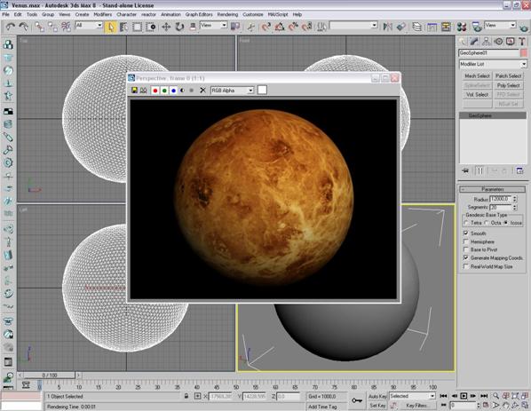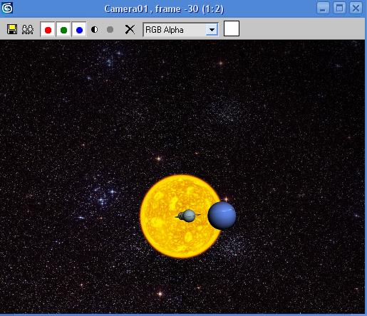 Pentru a crea imaginea de background si ca aceasta sa se miste corespunzator la filmare este nevoie ca textura dorita sa fie aplicata pe interiorul unei sfere. Se creaza o sfera de raza "115 000". Dar in aceasta sfera nu se poate "intra" si nici textura nu se va vedea in interior. Pentru a ii putea aplica textura si in interiorul sferei, trebuie sa i se dea grosime, iar acest lucru se face aplicand un modifier, Shell. Acum se poate deschide editorul de materiale si la harta de tip Diffuse Color se alege Bitmap si se cauta imaginea "CerMarte.jpg.". La aplicarea texturii pe sfera, aceasta se aplica atat in interior cat si in exterior. Problema imaginii de background este astfel rezolvata.