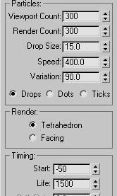 In continuare setam timpul de manifestare a exploziei si viteza de la Particle Generation -> Speed=10, Emit Start=15, Display until 100, Life=89.
