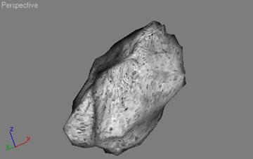Se observa in figura de mai sus ca asteroidul are muchii ascutite, de aceea pentru a le atenua se aplica un alt modificator([Modify]->[Modifier List]->[Mesh Smoth]), cu numarul de iteratii egal cu 2.