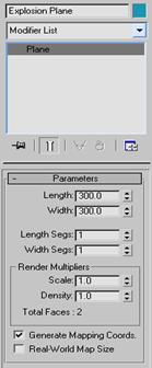 Se creaza un plan care are rolul de "suport" al asteroidului nostru, ii dam numele Explosion Plane, cu lungimea si latimea de 300, 1 segment, ca in imaginea de mai jos.