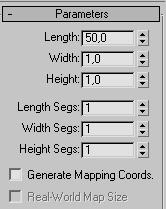 Pentru inceput se alege Create->Standard Primitives-> Box, cream o cutie de dimensiunile din imagine, care va reprezenta un laser fictiv cu rolul de a patrunde roca noastra.