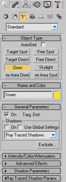 Incepem in primul rand prin crearea luminii: Create->Lights->Omni, pe care o asezam in scena acolo unde ar trebui sa stea un soare in mod normal. O vom numi simplu, Soare