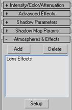 Apoi, avand inca lumina selectata, mergem la Modify->Athmosphere&Effects->Add. Acolo alegem Lens Effects.
