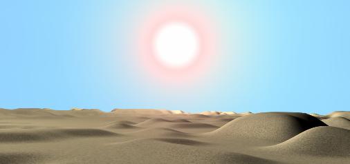 Dupa ce am terminat cu punerea in scena a personajelor, trebuie sa cream background-ul. Pentru a crea cerul care si aici trebuie sa se miste corespunzator la filmare este nevoie ca imaginea dorita sa fie aplicata tot pe interiorul unei sfere care sa contina si planul desertului. Se creaza o sfera de raza "115 000" careia ii aplicam modifierul Shell. Acum se poate deschide editorul de materiale si la harta de tip Diffuse Color se alege Bitmap si se cauta imaginea "Sky.jpg.".