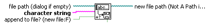 - Functia Write Characters To File.vi scrie un sir de caractere într-un fisier sau îl adauga daca fisierul exista.