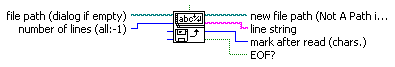 - Functia Read Lines From File.vi citeste un numar specificat de linii începând cu caracterul specificat.