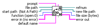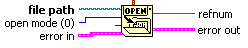- Functia Open/Create/Replace File.vi deschide un fisier existent, creaza unul nou sau înlocuieste un fisier în mod programabil sau interactiv utilizând o casuta de dialog.