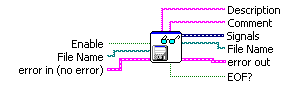 - Functia Read LabVIEW Measurement File citeste datele dintr-un fisier ce contine masuratori în LabVIEW.