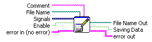 - Functia Write LabVIEW Measurement File scrie date într-un fisier de masuratori în LabVIEW.