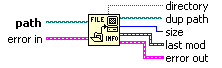 - Functia File/Directory Info întoarce informatii despre fisierul sau directorul specificat prin câmpul path, informatii despre marime, data ultimei modificari si daca este sau nu director.