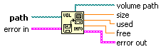 - Functia Volume Info întoarce informatii despre partitia care contine fisierul sau directorul specificat prin câmpul path, informatii despre capacitatea partitiei, spatiul utilizat si spatiul ramas în octeti.