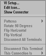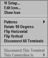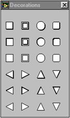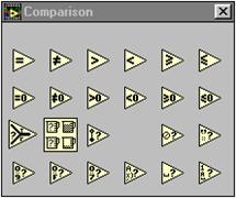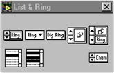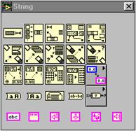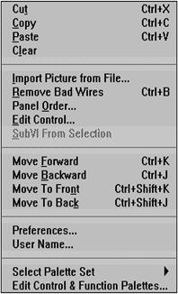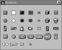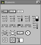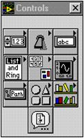 Fiecare panou frontal si diagrama bloc contine o paleta cu butoane de comanda si indicatoare despre statutul unui VI, folosite pentru control. Una sau cealalta dintre palete este functionala la un moment dat depinzând de modul de lucru.