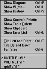 În modul de editare se poate crea sau modifica un program. Daca este deschisa fereastra panoului frontal si se alege din meniul Windows comanda Show Tools Palette, se deschide o paleta cu toate uneltele ce sunt necesare pentru construirea unui VI.