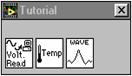 Când se lanseaza LabView, apar doua ferestre: