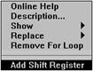Initializarea registrilor de schimb - Pentru initializarea registrului de schimb cu o valoare specificata, se conecteaza valoarea initiala la terminalul din stânga al registrului de schimb (din afara buclei While). Daca se lasa registrul de schimb neinitializat, valoarea initiala va fi de exemplu: daca tipul de data a registrului de schimb va fi boolean, valoarea initiala va fi FALSE; similar daca tipul registrului este numeric, valoarea initiala va fi 0.