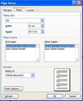 In aceeasi fereastra Page Setup, insa in cadrul etichetei Paper se alege fimensiunea hartiei, din caseta derulanta Paper size.
