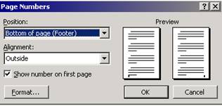 Selectati comanda Page Numbers- va apare caseta de dialog Page Numbers;
