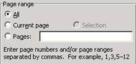 prezenta in partea de sus, de asemenea, sa selectati pagina, anumite pagini sau tot documentul care trebuie tiparit