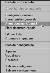 O posibilitate comun\ documentelor [i listelor este selectarea uneia din op]iunile de configurare din meniul derulant afi[at la ap\sarea butonului dreapta de pe mouse (figura 6.1.1.4.). Utilizarea butonului are efect numai dup\ ce programul afi[eaz\ coloanele documentului sau listei selectate.