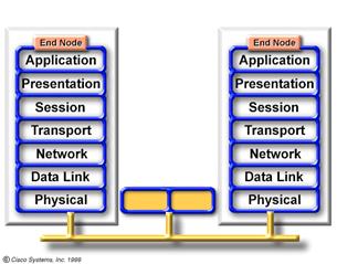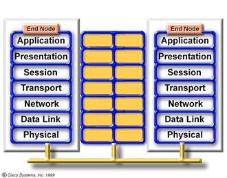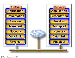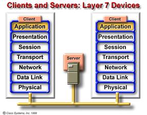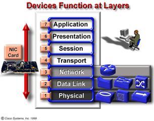 Urmariti transportarea informatiei prin cluds si prin dispozitivele de nivel 1-7 Graficul demonstreaza ca exista dispozitive care actioneaza asupra tuturor celor 7 nivele. Unele aparate (e.g. PC) sunt dispozitive de nive 1-7. Cu alte cuvinte executa procese ce pot fi asociate fiecarui nivel al modelului OSI. Incapsularea si decapsularea sunt doua exemple de acest gen . Dispozitivul denumit gateway ( e un dispozitiv ce se comporta ca un router )este de asemenea un dispozitiv de nivel 1-7 .In sfarsit ,norul (cloud) ce poate contine cateva tipuri de medii de transmisie , placi de retea , dispozitive de retea hardware si software, este de asemenea considerat dispozitiv de nivel 1-7. |