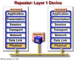 functia , modul de aparitie si nivelul OSI al unui amplificator , asa cum este el atasat unui LAN.