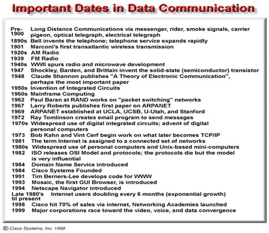 3.2.1.1. Descrieti evolutia dispozitivelor de retea dupa cum sunt corelate cu evolutia calculatoarelor . istoria retelelor de calculatoare este complexa , implicand oameni din intreaga lume de mai bine de 30 ani.Ceea ce va fi prezentat aici reprezinta evolutia simplificata a dispozitivelor studiate . Procesuk inventarii si comercializarii sunt mult mai complicate , dar e extrem de util sa observam atat problemele pe care fiecare dispozitiv le-a rezolvat cat si cele care inca raman nerezolvate . In 1940, computerele erau dispozitive electromecanice uriase predispuse esecului. In 1947, inventarea tranzistorului semiconductor propune o serie de posibilitati de a le face mai mici si mai performante . In 1950, calculatoarele mainframe au inceput sa fie des utilizate in institutii. La sfarsitul anilor '50, circuitul integrat - care combina cateva , multe , si in prezent milioane de tranzistori intr-o oiesa mica semiconductoare -a fost inventat. Catre 1960, mainframurile cu terminale erau extrem de comune ,si circuitele integrate erau din ce in ce mai mult folosite . Spre sfarsitul anilor 60 si 70, calculatoare mai mici , numite minicomputere (desi dupa standardele de azi sunt uriase) au aparut . In 1978, compania Apple Computer a introdus calculatorul personal (PC). In 1981, IBM a introdus arhitectura dechisa a unui PC. Utilizatorul prietenos Mac, arhitectura dechisa IBM PC,si microminiaturizarea circuitelor integrate , toate au condus la raspandirea rapida a calculatoarelor acasa si in afaceri . La inceputul anilor '80 , utilizatorii calculatoarelor - avand computere de sine statatoare -au inceput sa partajeze date(fisiere) si resurse (imprimante). Oamenii s-au intrebat :de ce nu le conectam? In timp ce se intamplau toate acestea , sistemul telefonic continua sa se imbunatateasca .In special in domeniul technologiei comutate si al serviciilor pe distante mari ( datorita microundelor si fibrelor optice ). Cele mai multe inovatii s-au facut la inceputul anilor '80 in urma despartirii Bell System. Incepand din 1960 si continuand in '70, ' 80, si ' 90, Departmentul Apararii(DoD) a dezvoltat largi , performante retele de calculatoare (WAN). O parte din technologia lor a fost folosita in dezvoltarea LAN-urilor ,dar mult mai important WAN -ul dezvoltat de DoD a devenit Internet. Pentru a intelege urmatorul pas in dezvotarea retelelor , imaginati -va urmatoarea problema : undeca in lume doua calculatoare doreau sa comunice intre ele . Pentru a realiza acest lucru aveau nevoie de un dispozitiv special pentru a face legatura dintre calculator si medii (placa NIC ), si o modalitate de a face mesajele sa calatoreasca (mdiul de transmisie). Sa presupunem ca se doreste realizarea comunicarii intre doua calculatoare aflate la o distanta considerabila unul fata de celalat.Raspunsul la aceasta problema a venit sub forma amplificatoarelor si a hub-urilor . Amplificatorul (un dispozitiv vechi folosit in retelele de telefonie )a fost introdus pentru a permite semnalelor sa calatoreasca mai departe . Amplificatorul multi-port , sau hub-ul, a fost introdus pentru a permite unui grup de utilizatori sa partajeze fisiere , servere si dispozitive periferice.Acest aranjament este numit retea pentru grupuri de utilizatori (workgroup) In curand aceste grupuri au dorit sa poata comunica intre ele . Datorita functiilor asigurate de hub-uri (distribuiau mesajele catre toate porturile indiferent de destinatie),si pentru ca numarul gazdelor si al grupurilor de utilizatori a crescut a fost introdus bridge-ul pentru a segmenta reteaua si pentru a putea controla traficul in retea . Cea mai buna din functiile hub-ului - concentrare /conectivitate - si cea mai buna functie a unui bridge - segmentarea - au fost combinate pentru a produce un switch. Are o multime de porturi ,dar permite fiecaruia sa pretinda ca are o conexiune facuta catre cealalta parte a bridge-ului , ceea ce inlesneste implicarea utilizatorilor multiplii si realizarea multiplelor comunicari. La mijlocul anilor '80, s-au dezvoltat asa numitele porti( gateway) si apoi routerele. Aceste dispozitive permit interconectarea LAN-urilor separate . Internet -ul a fost creat . Departmentul Apararii (DOD) produsese deja o extensie a internetului ,dar disponibilitatea comerciala a routerelor - care transportau cele mai bune selectii de cai si comutau datele folosind multiple protocoale -a produs o crestere rapida retelelor. Norii ( cloud ) reproduc aceasta explozie de informatie si technologie. Urmatorul pas urmarit a fost compatibilitatea dintre calculator si technologia comunicatiilor , in special in ceea ce priveste transportul datelor , imaginilr sau sunetului , care in mod traditional au calatorit prin diferite metode , in functie de sistemul folosit.. |