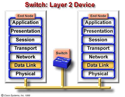 Switch -ul foloseste adrese MAC pentru a lua deciazia de comutare.Va puteti gandi la fiecare port al unui switch ca la un micro-bridge, ceea ce il face dispozitiv de nivel 2. |